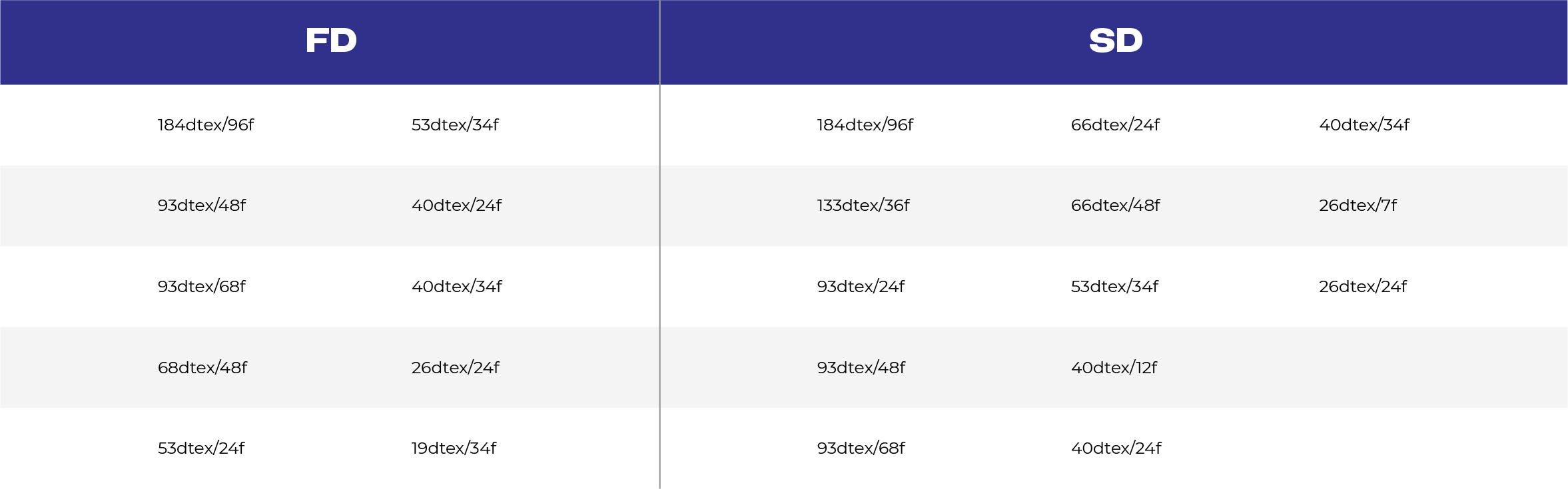 عدد خيوط الغزل: 5F-136F